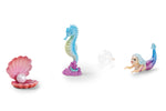 Der Legende nach leben die weiblichen Fabelwesen in den Tiefen der Meere. Schaffe mit unseren EDEN Meerjungfrau Set aus Seepferdchen, Muschel und der schwimmenden Meerjungfrau eine fabelhafte Welt. Die detailreichen Elemente sind umgeben von einem glänzenden Schimmer und lassen Kinderaugen erstrahlen. Dank der oberhalb des Körpers befestigten Kugel schwimmt die Meerjungfrau im Aquarium.