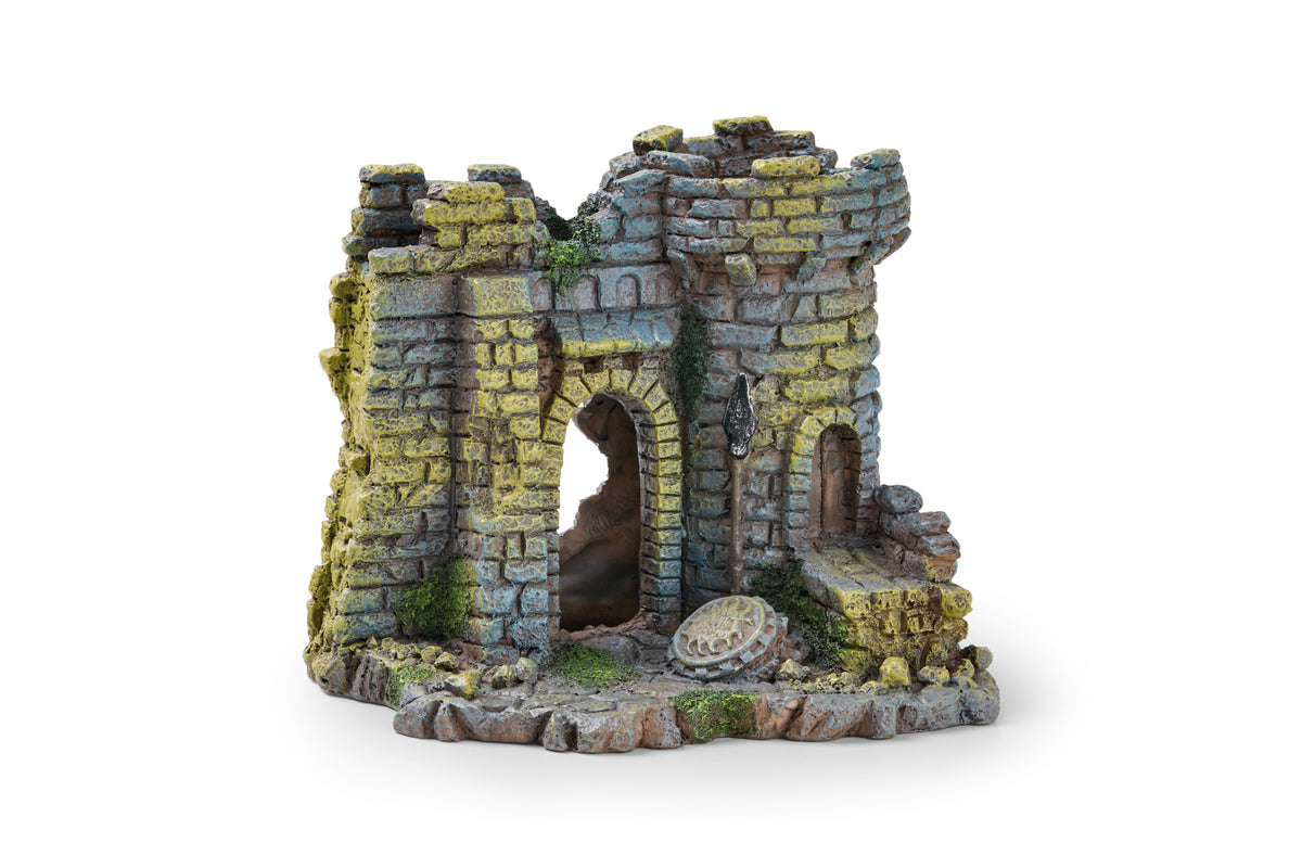 Tauche ein in eine längst vergessene Welt. Mit der EDEN Dekorations-Reihe der Ruinen kreierst du eine traumhafte Unterwasserwelt für deine Aquarienbewohner, aber auch für dich als Betrachter. Die EDEN Burgruine klein (12,8 × 10,3 × 11,2 cm) mit ihrem Turm wird das Herzstück deines Aquariums sein. Die detailreiche Struktur und die Öffnungen bieten zahlreiche Versteckmöglichkeiten, die deinen Fischen ein Gefühl von Sicherheit und Abenteuer zugleich bieten. Dabei kannst du deine Tiere auch beobachten.